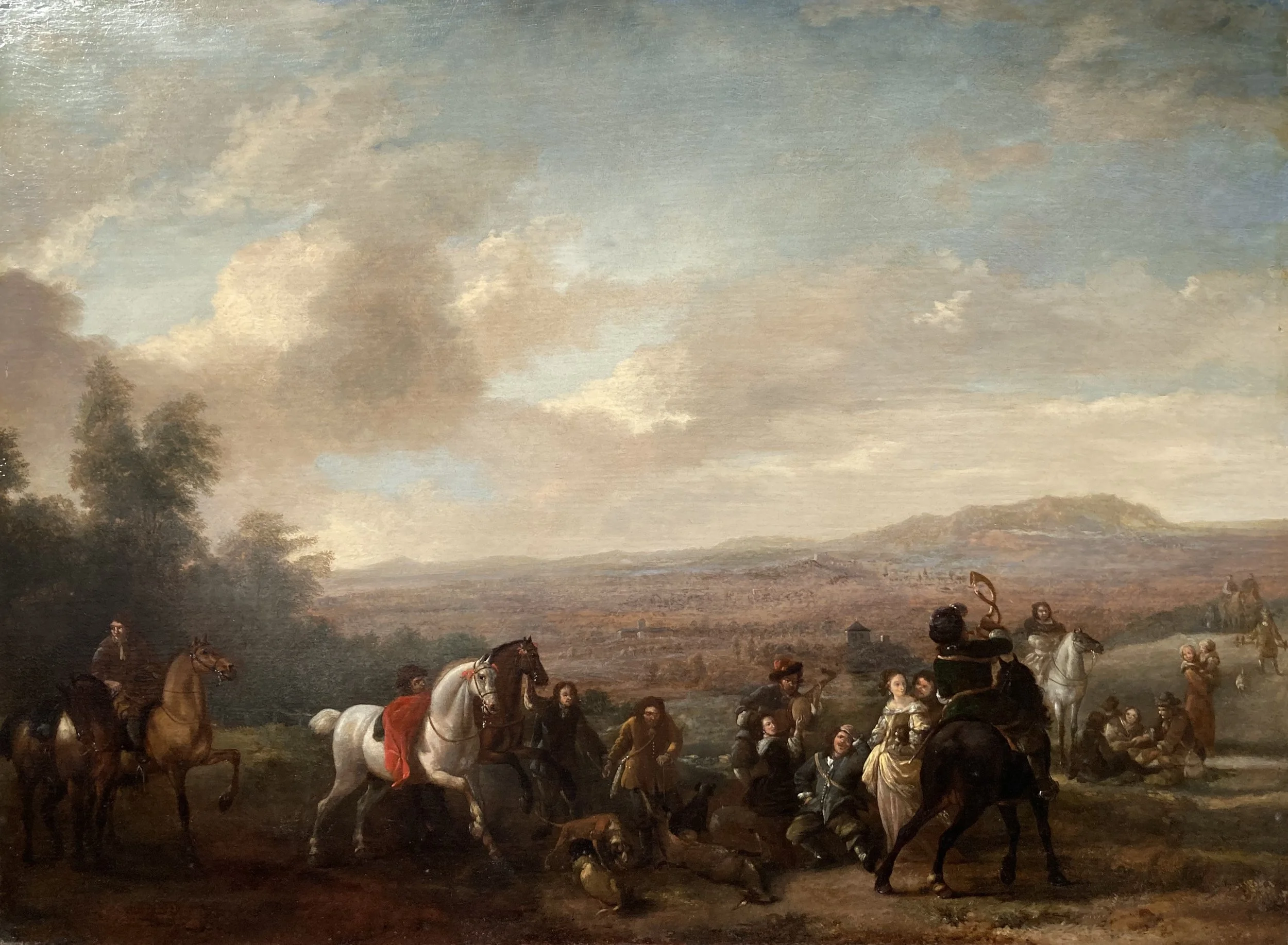 Phillips Wouwerman, Dutch 17c, oil on oak panel, cleaning for old varnish and previous restorations.